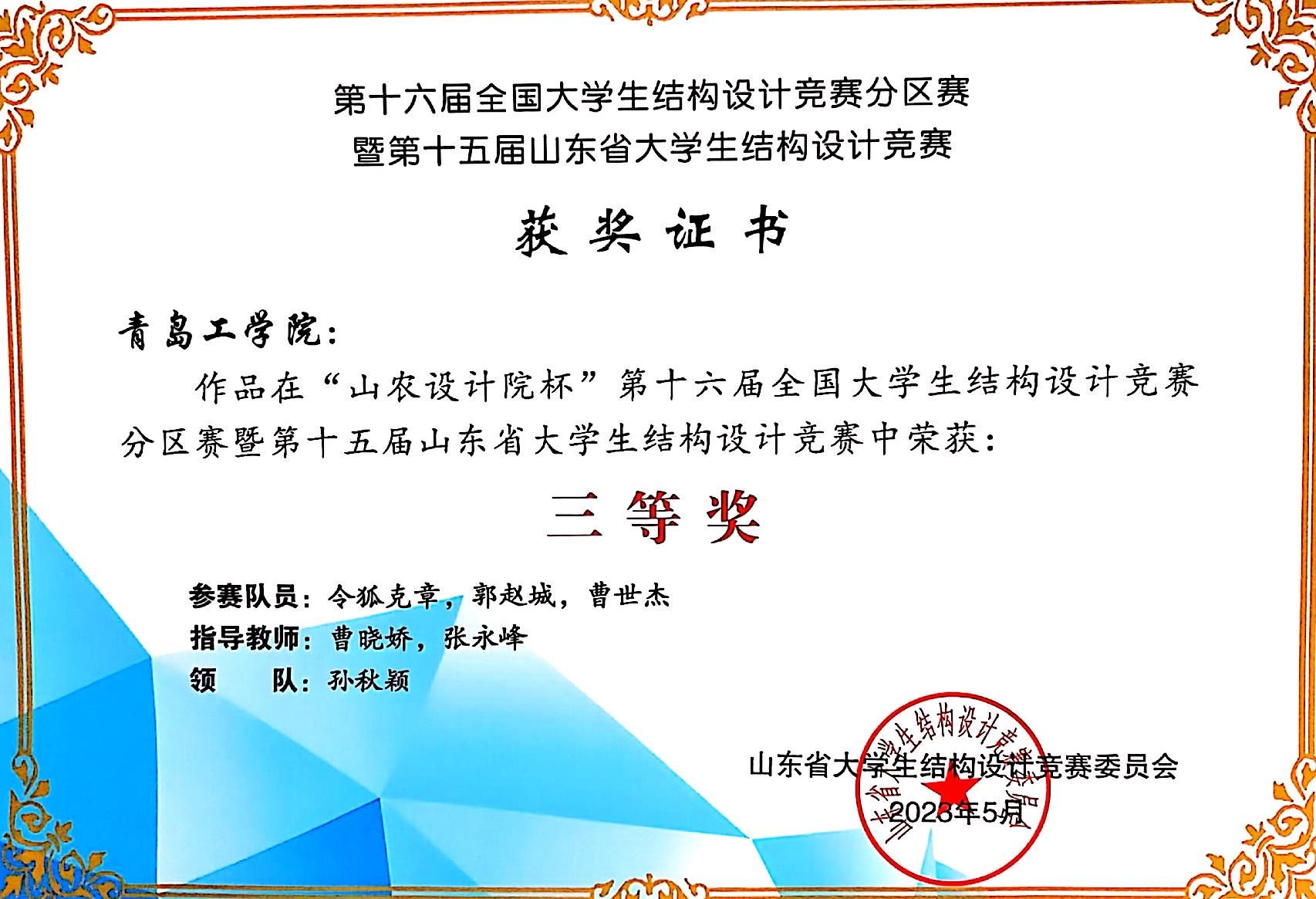 全国老员工结构设计竞赛为教育部、财政部首次联合批准发文的全国性9大学科竞赛资助项目之一,是土木工程学科培养老员工创新精神、团队意识和实践能力的最高水平学科竞赛。第十六届山东省结构设计大赛于2023年在山东农业大学举办,涉及34所山东高校,共计69支队伍参加比赛。