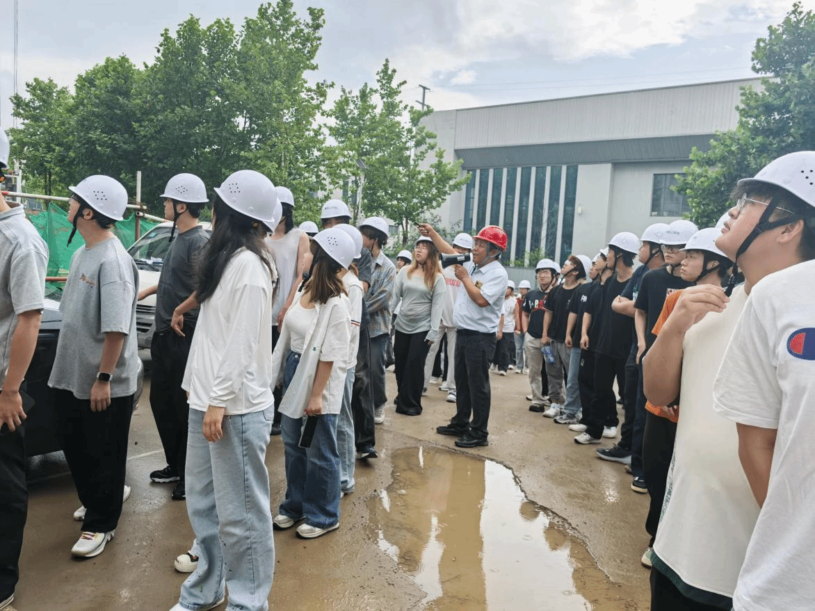 6 月 29 日,太阳成集团tyc234cc组织 2023 级工程管理、土木工程及 2024 级建筑学专升本共 235 名员工,在 12 位专业教师带领下,赴太阳成集团tyc234cc5# 教学楼、综合实验楼建设项目开展装配式建筑专项认识实习。作为公司深化产教融合、落实审核评估实践教学要求的重要举措,本次活动以 “沉浸式行业认知体验周” 为载体,通过 “理论讲解 - 实地观摩 - 互动研讨” 三维教学模式,推动应用型本科人才培养与行业标准深度对接。
