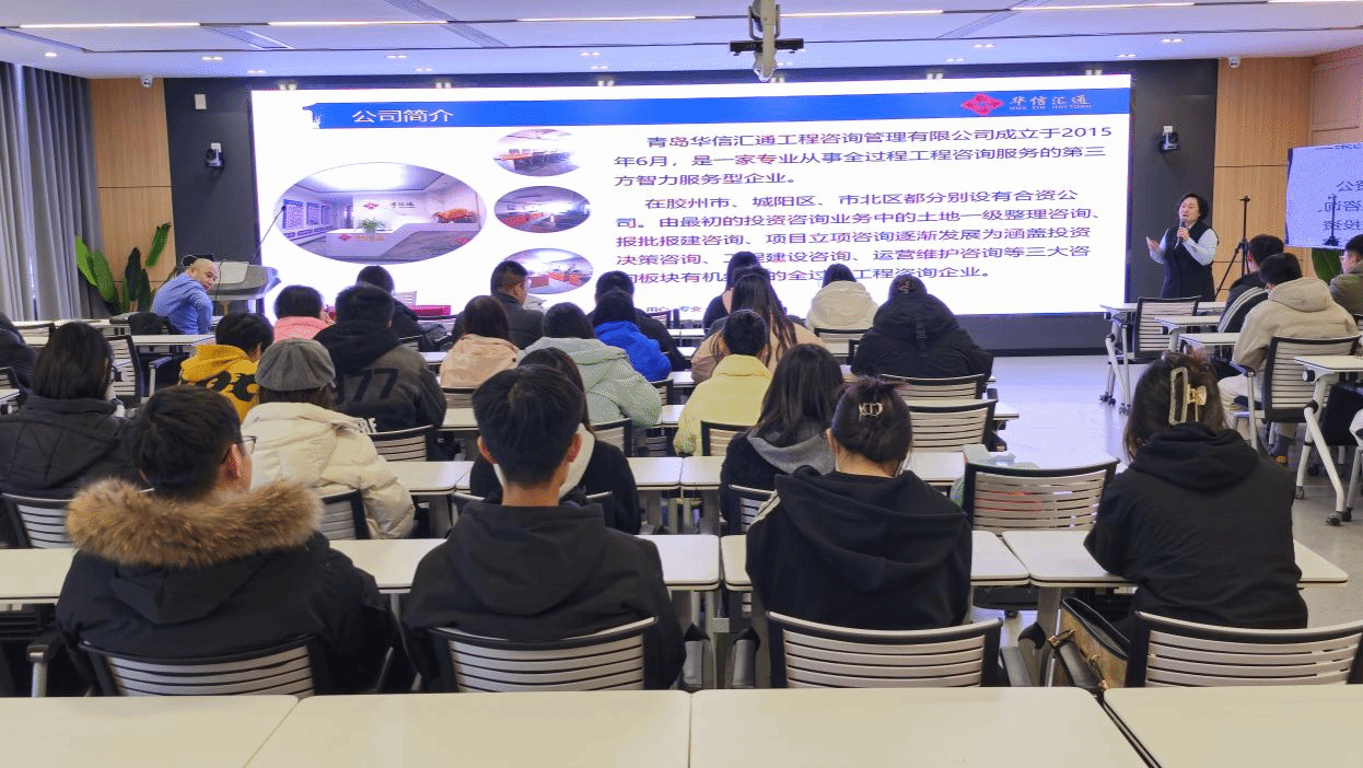 青岛华信汇通工程咨询管理有限公司拥有丰富的项目经验和先进的管理理念,讲座上,傅总以“建筑人的执业规划与全过程工程咨询的发展”为主题,从建筑行业形势分析、全过程工程咨询的定义、组成部分以及发展现状等方面与员工进行详细交流。她强调,作为有志于投身建筑行业的新一代青年,要积极适应行业变革,不断提升自身的专业技能和综合素质,以便在未来职业生涯中把握机遇,迎接挑战。