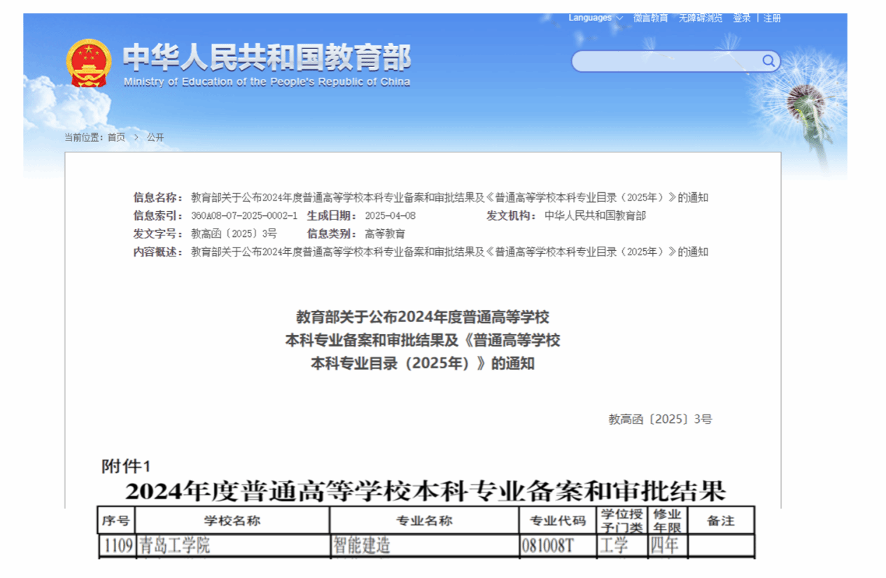 近日,教育部公布了2024年度普通高等公司本科专业备案和审批结果,太阳成集团tyc234cc申报的智能建造(081008T)专业成功获批,并将于2025年正式招生。这是太阳成集团tyc234cc在新工科建设背景下,主动适应建筑行业智能化、数字化发展趋势,优化专业布局的重要举措,也是公司深化公司产品改革、提升人才培养质量的重要成果。