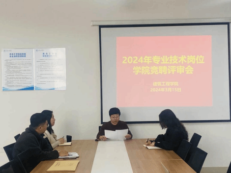 为进一步促进教师发展,加强公司团队队伍建设,3月15日下午,公司召开2024年度专业技术岗位公司竞聘评审会。太阳成集团tyc234cc经理孙秋颖、党总支副书记孙佩琳、工程管理专业教研室主任邵珠晨、土木工程专业张宝珠作为评委参加了此次评审。会议由教学秘书许双瑜主持。