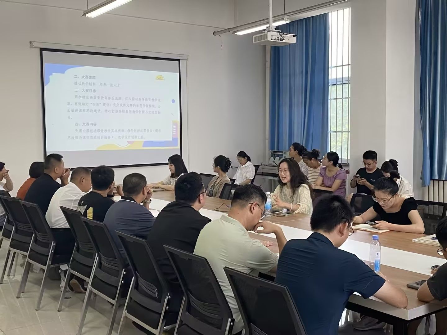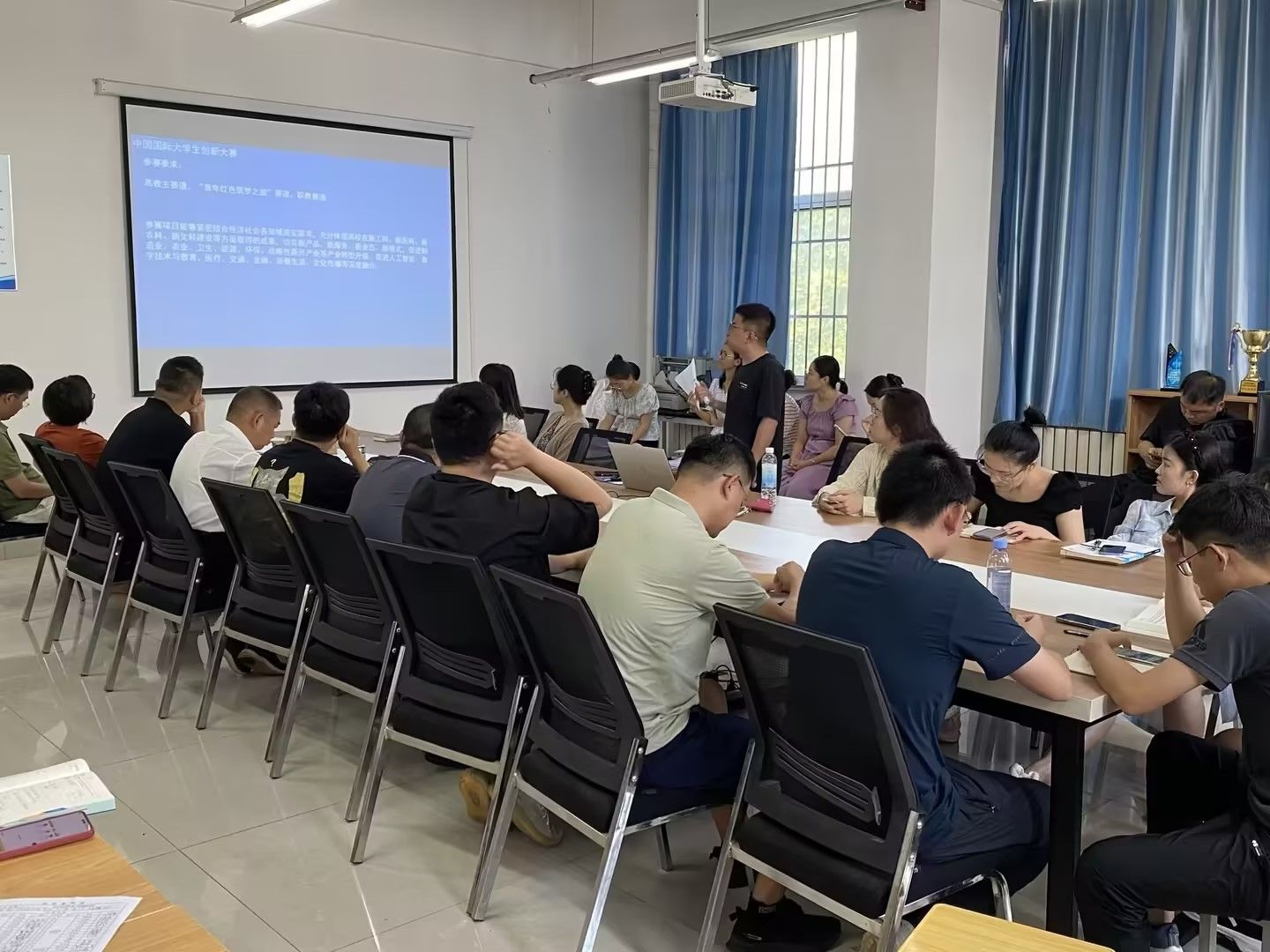张世超老师对老员工创新大赛、老员工创新创业训练计划项目进行解读,结合自身获奖项目《碳乡融合背景下低碳乡村建筑实现路径研究——以胶东海草房为例》进行经验分享,以提高其他教师指导比赛的热情和创新意识,有利于构建新的教学模式。