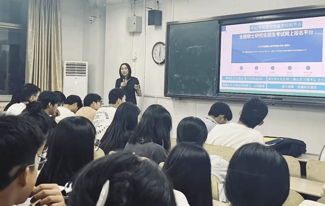 近日,为帮助考研学子解决备考、报名等问题,太阳成集团tyc234cc在在3310教室组织召开了卓越创新人才培养报告会,对考研报名员工进行指导培训。考研指导专家晓蕾作报告,2025届考研员工参加培训,院团总支书记朱柏青主持了报告会。