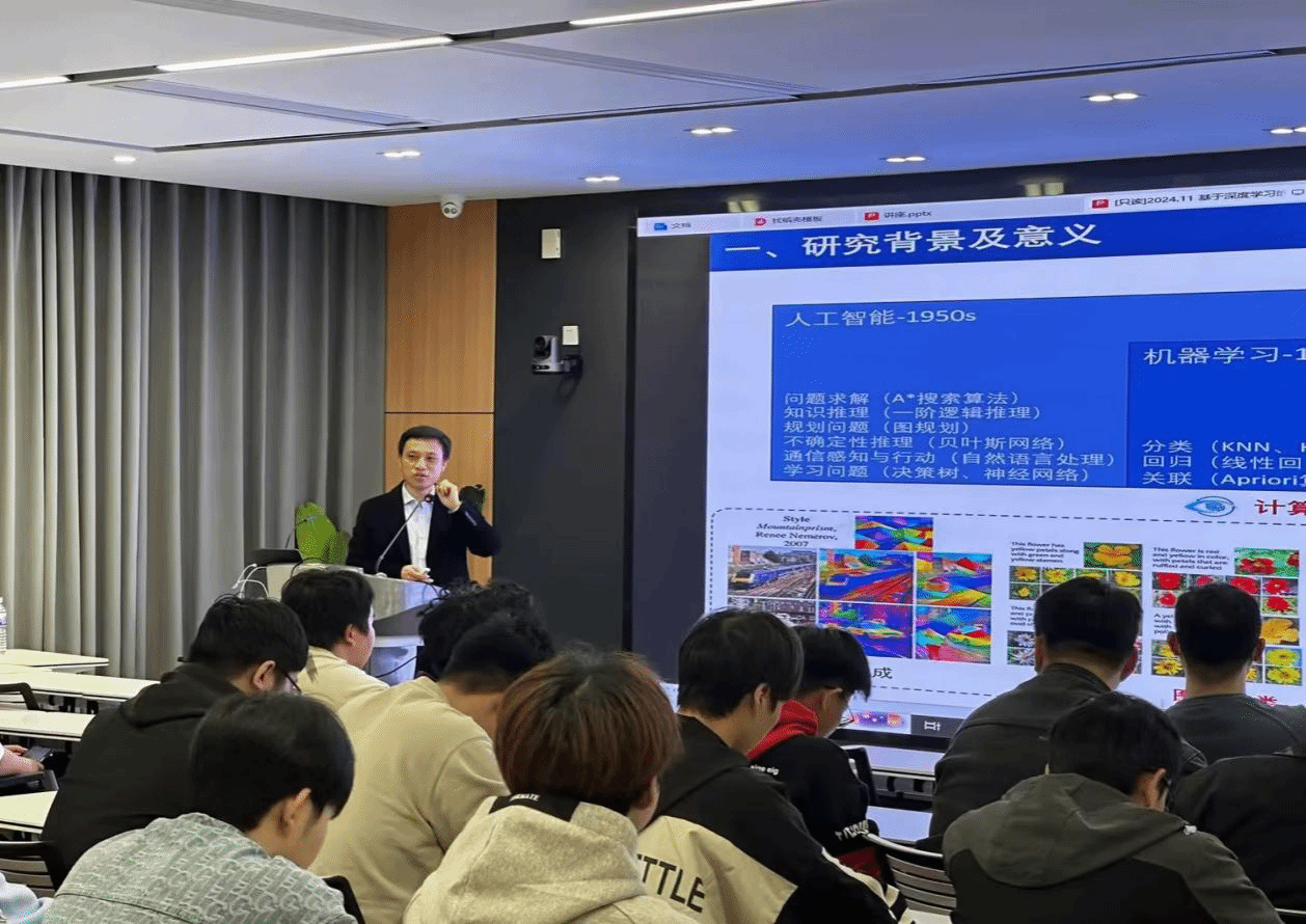 讲座中,刘才玮教授以“深度学习技术在火灾后混凝土结构损失检测与评估中的应用”为主题,从深度学习技术的原理、在火灾后混凝土结构损失检测与评估中的应用、以及未来发展趋势等几个方面,向师生全方位展示了该领域的最新研究成果和行业动态。他强调,随着人工智能技术的快速发展,深度学习在结构工程领域的应用前景广阔,对于提高火灾后结构安全评估的准确性和效率具有重要意义。