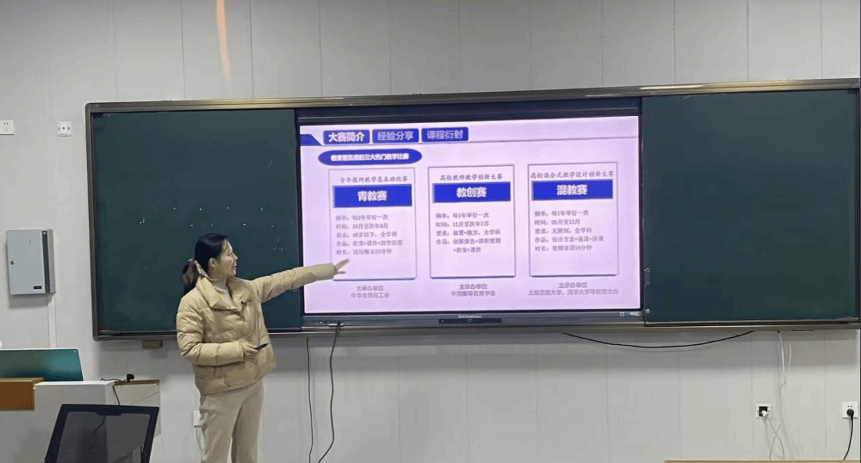 此外,曹瑞丹老师还结合自己的教学实践,分享了如何在日常教学中融入竞赛元素,提升教学质量的方法。她强调,青年教师应该注重课堂互动和员工反馈,不断优化教学方法和手段,激发员工的学习兴趣和积极性。同时,她也鼓励青年教师们积极参加各类教学竞赛和学术交流活动,不断提升自己的专业素养和教学能力。